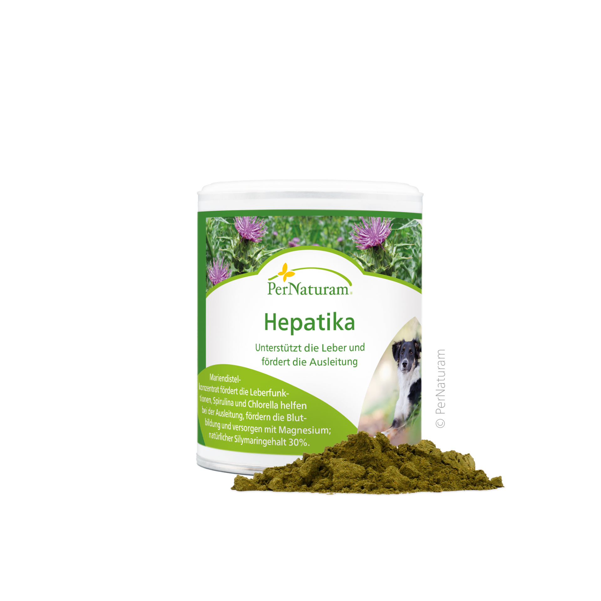 Mariendistelkonzentrat (Silymarin) fördert die Leberfunktionen, die Mikroalgen Spirulina und Chlorella helfen bei der Ableitung, fördern die Blutbildung und versorgen mit Magnesium; natürlicher Silymaringehalt 30 %.