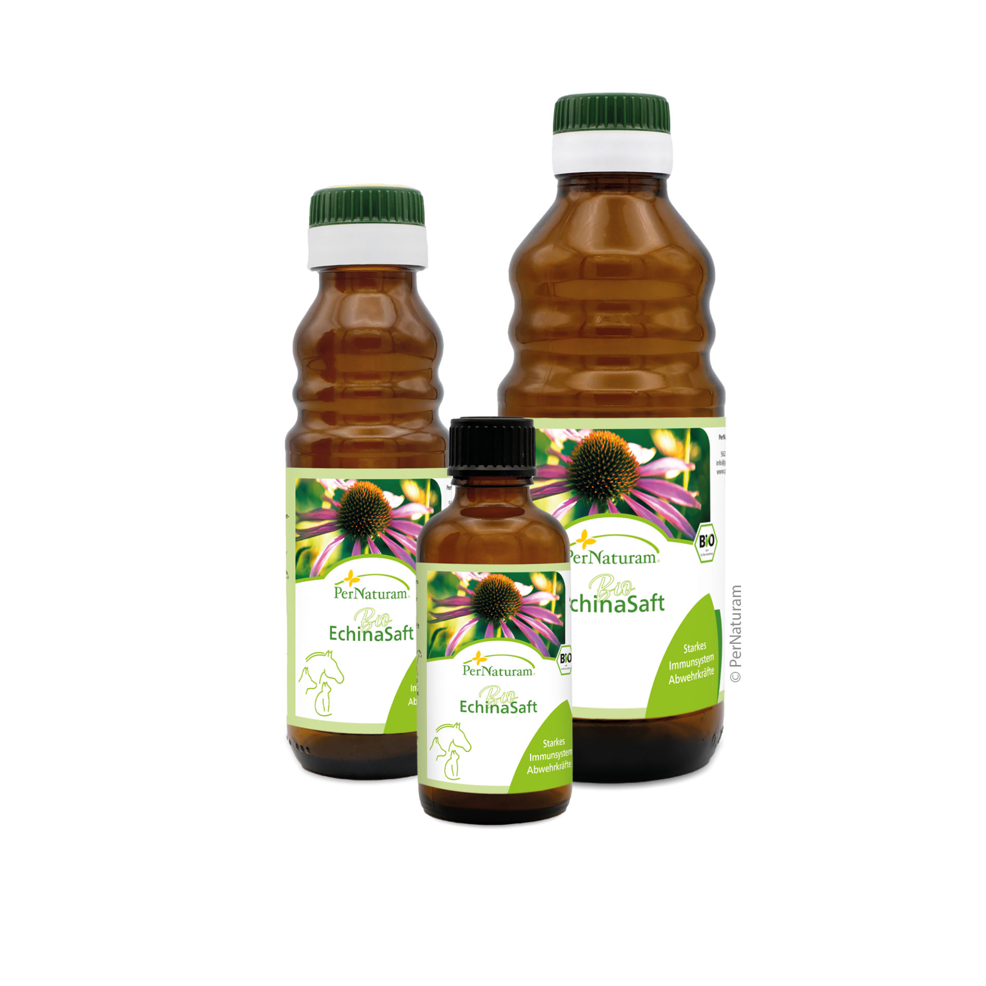 Gib den Bio-EchinaSaft je nach Größe des Tieres 2 - 3 mal täglich über das Futter oder direkt mit einer Pipette oder Maulspritze.